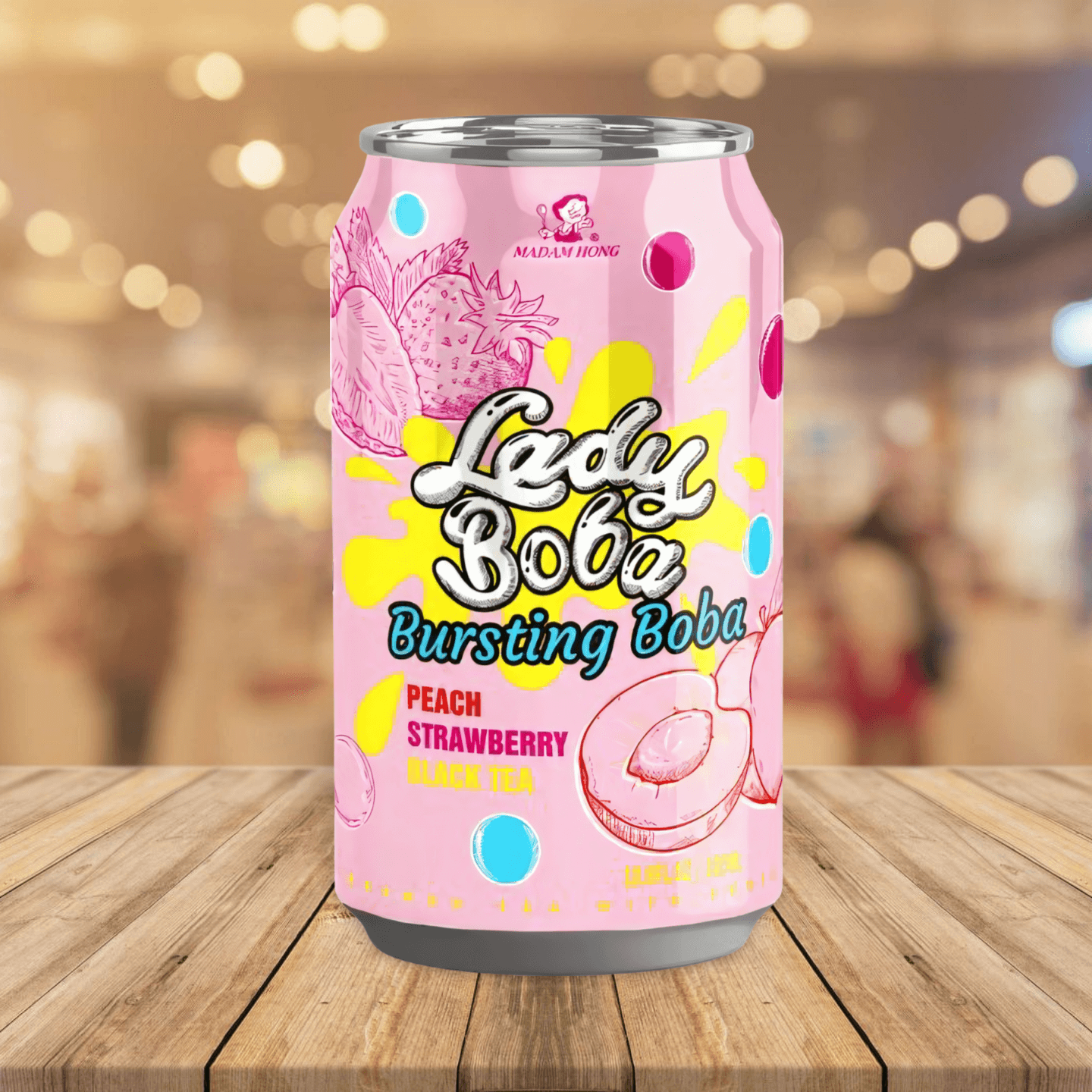 Madam Hong Peach Strawberry Black Tea with Bursting Bubble 洪大媽蜜桃草莓爆爆珠 320ml
